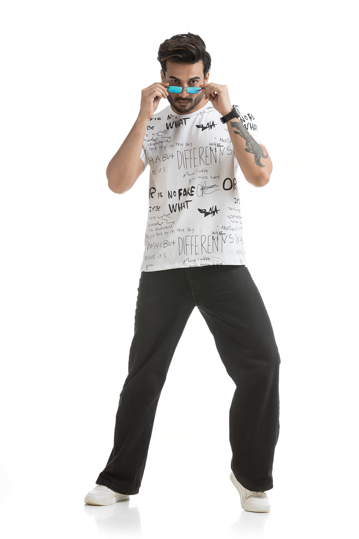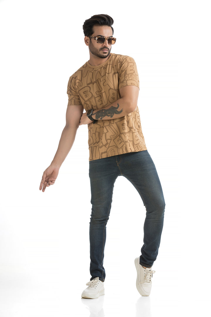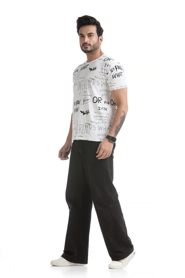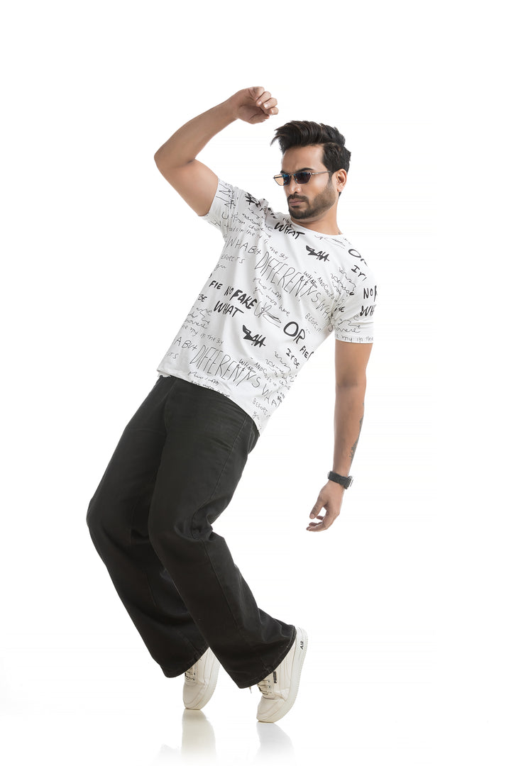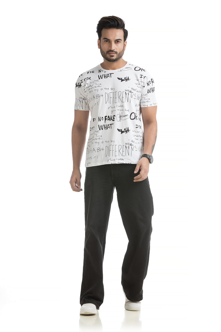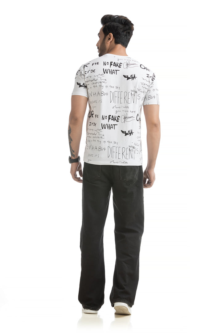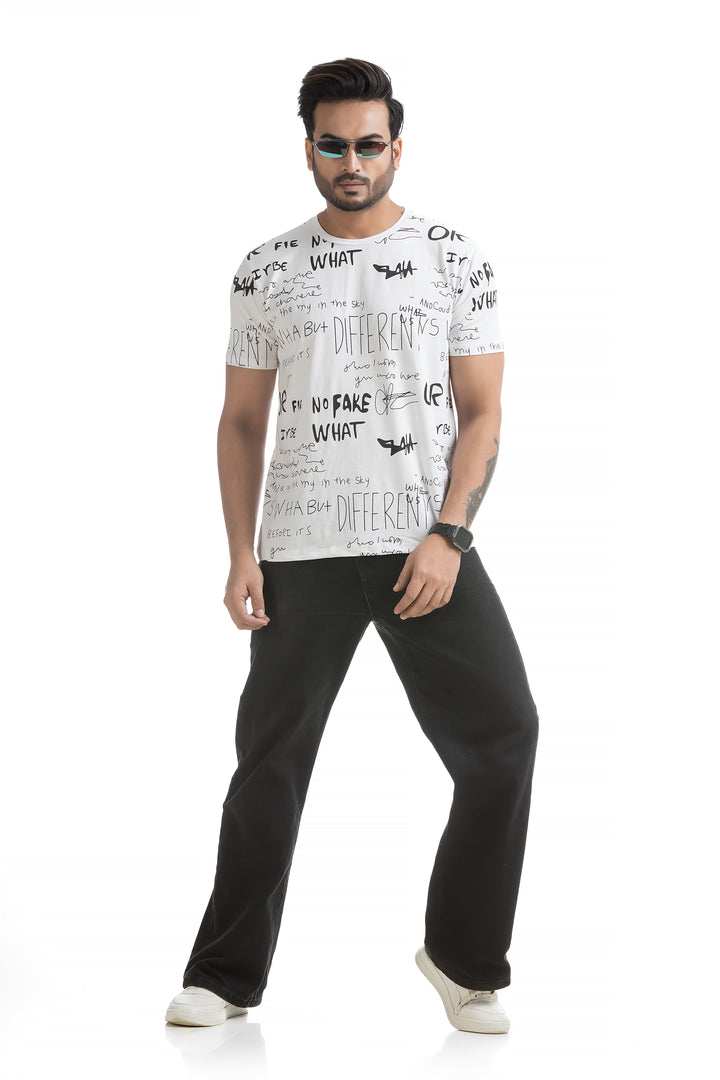Crafted from 100% cotton with cotton blend fabric, this All Over Print T-shirt offers maximum comfort, combining a soft, breathable feel with lightweight durability for all-day wear. The classic round neck and half sleeves complete the design, making it ideal for everyday wear or those weekend get-togethers with friends. Styling this All Over Print T-shirt is a breeze. Pair it with your favourite jeans or shorts for a casual day out, or layer it under a denim jacket for a bit of edge. Its versatile typography design works well with everything from joggers to cargo pants, giving you plenty of options to mix and match.