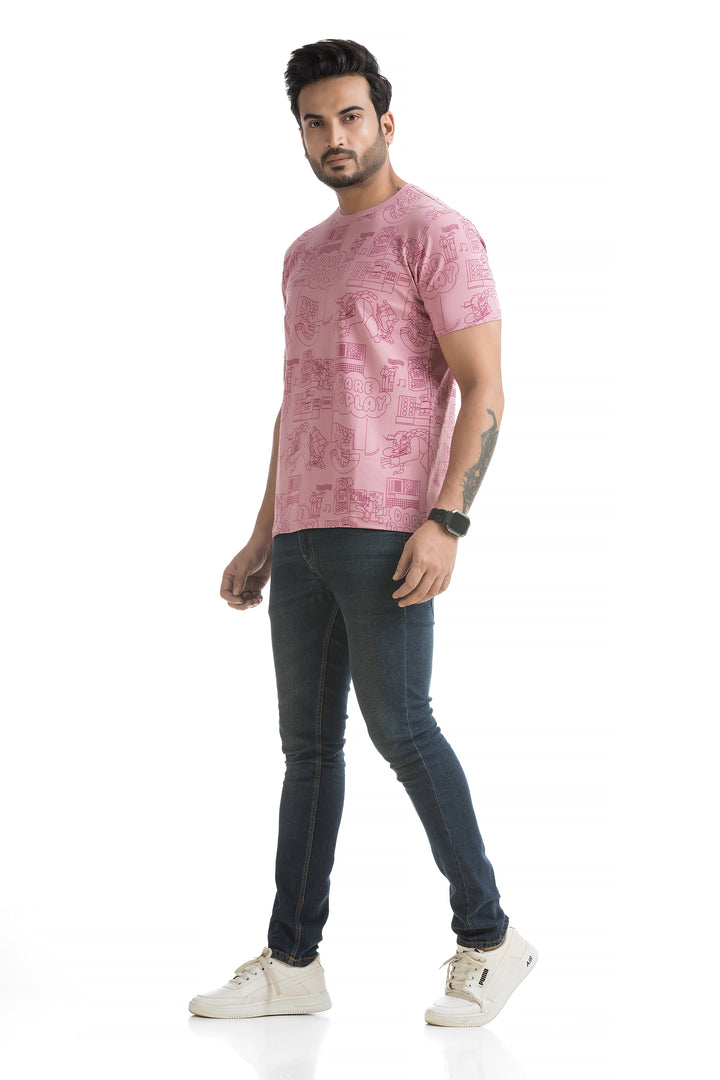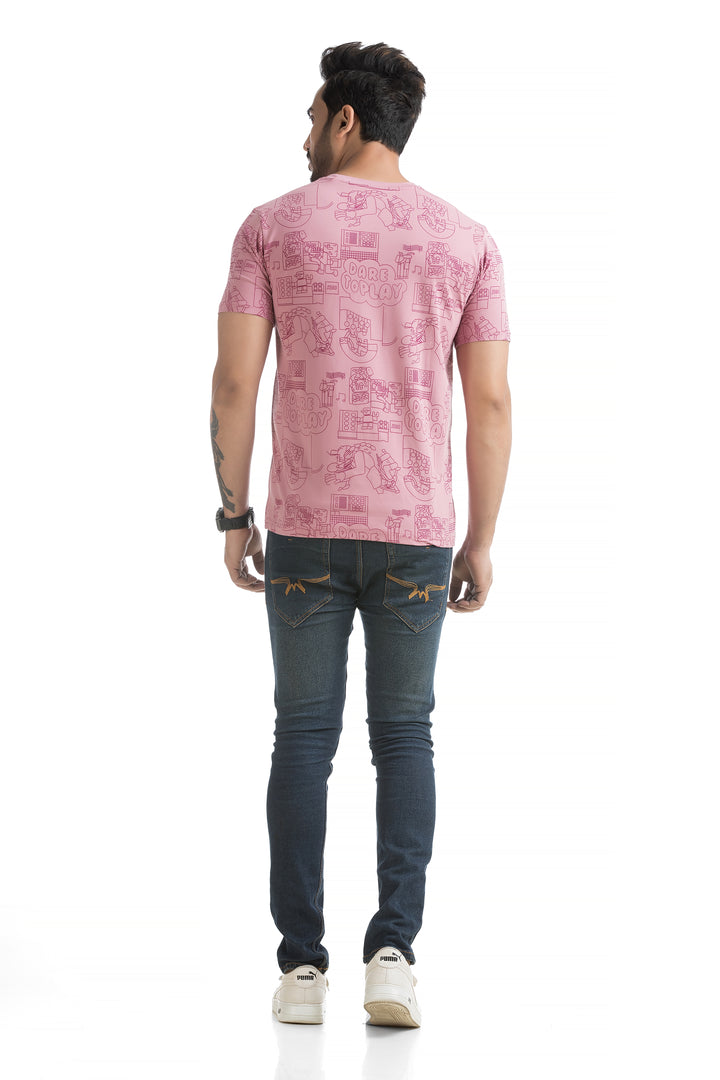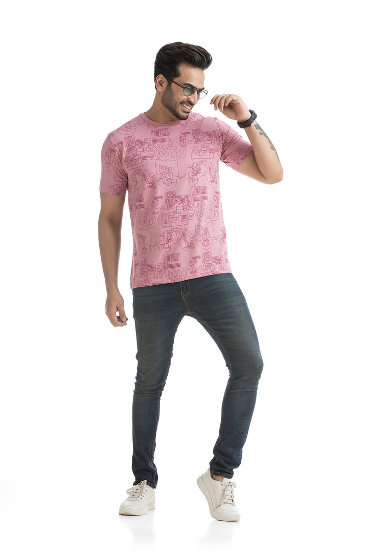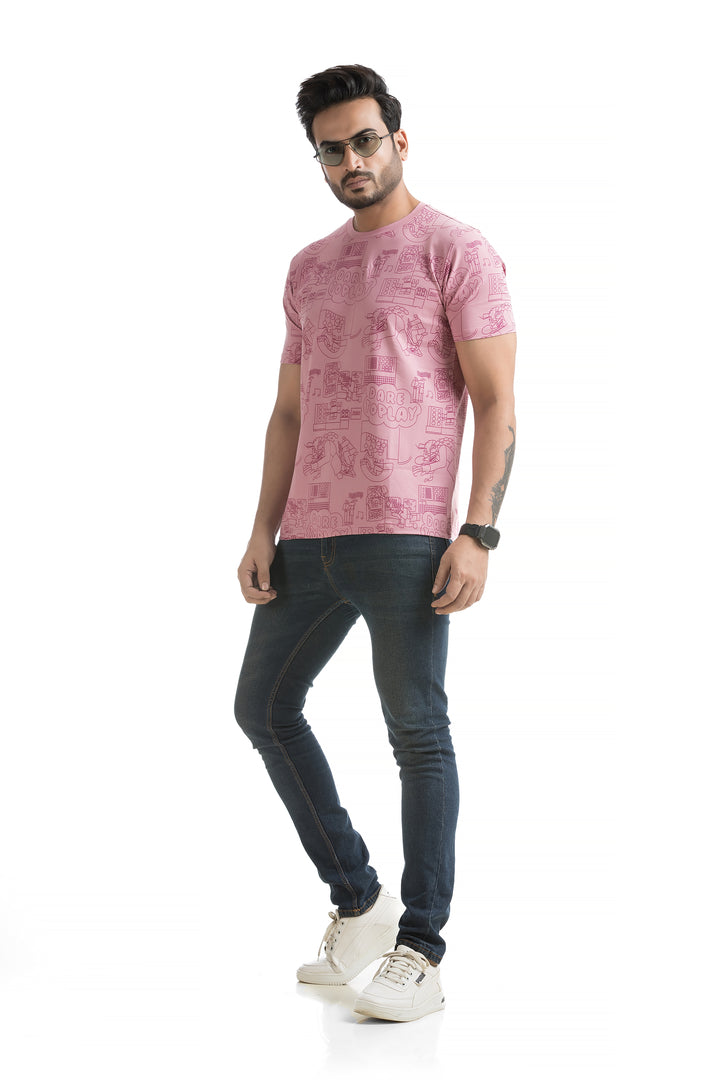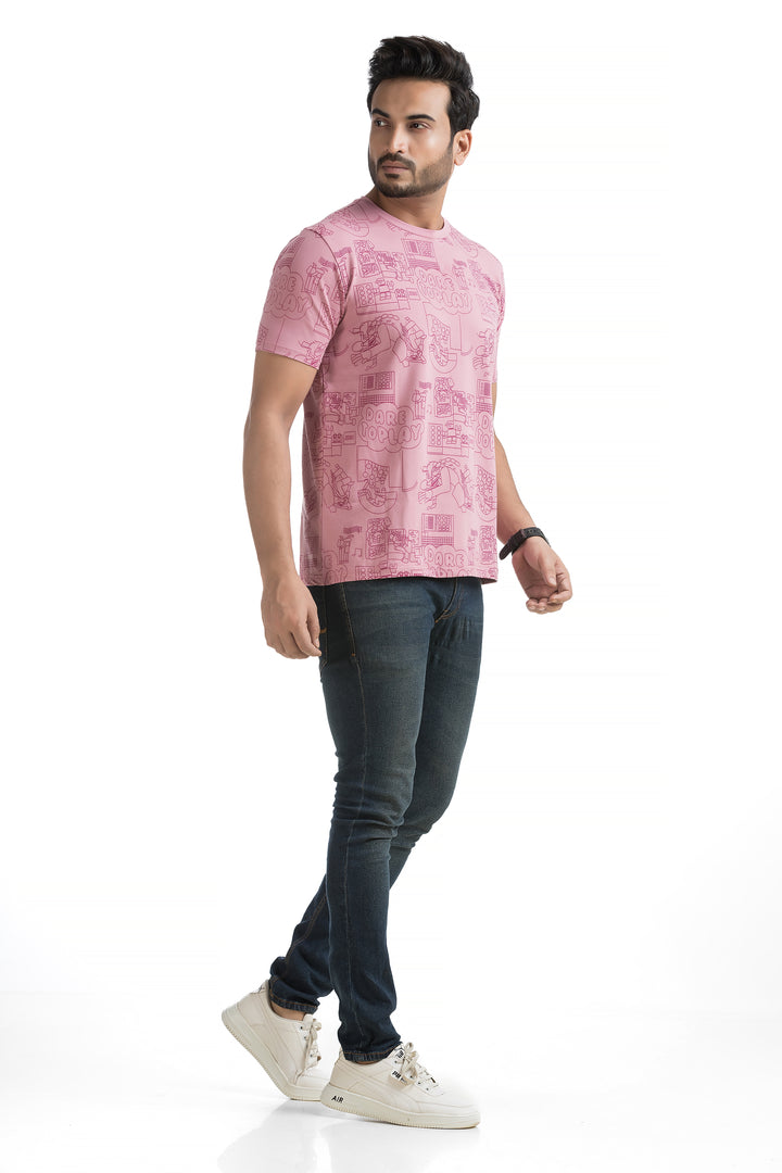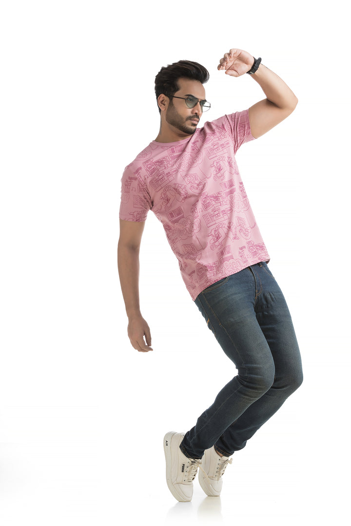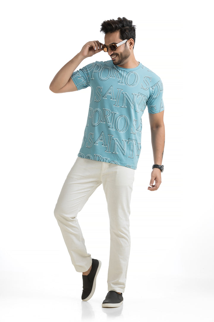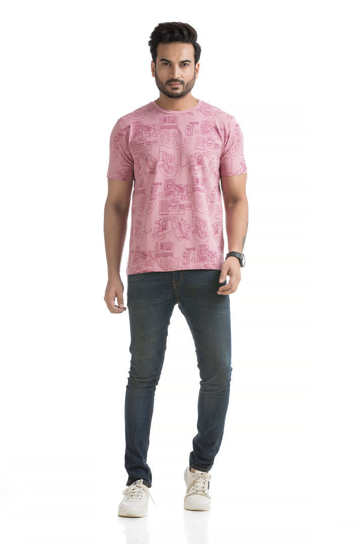 Crafted from 100% cotton with cotton blend fabric, this All Over Print T-shirt offers maximum comfort, combining a soft, breathable feel with lightweight durability for all-day wear. The classic round neck and half sleeves complete the design, making it ideal for everyday wear or those weekend get-togethers with friends. Styling this All Over Print T-shirt is a breeze. Pair it with your favourite jeans or shorts for a casual day out, or layer it under a denim jacket for a bit of edge. Its versatile typography design works well with everything from joggers to cargo pants, giving you plenty of options to mix and match.