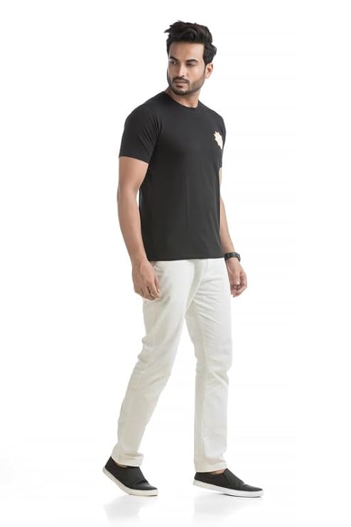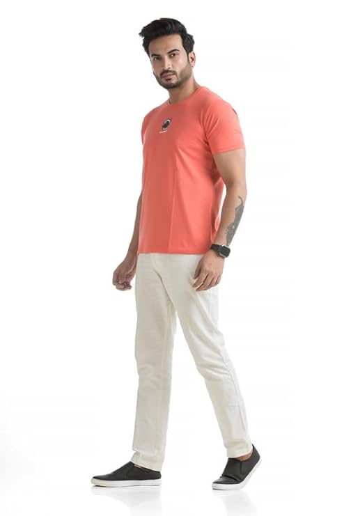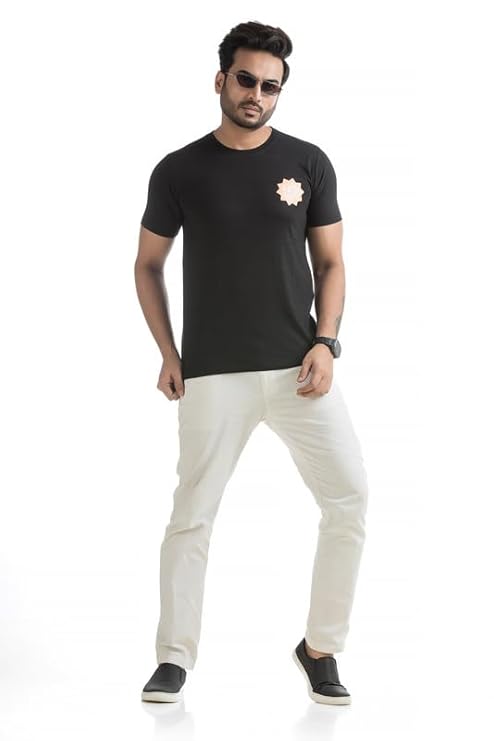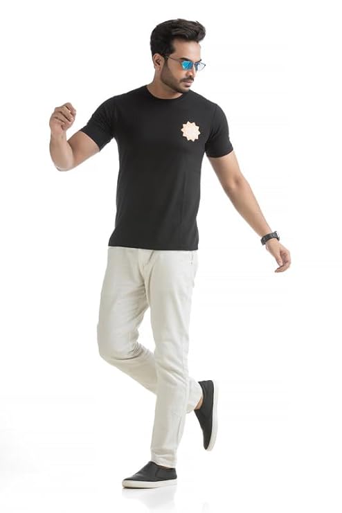 The T-shirt features a classic round neck, which adds a timeless touch to your outfit. This design is versatile and suits different body types and personal styles. The relaxed fit provides a more laid-back and casual vibe, giving you extra freedom of movement without compromising style.