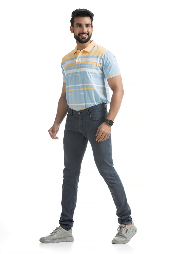 Regular fit polo shirt made of mercerised cotton. Lapel collar with front button fastening. Short sleeves. Perfect for everyday wear, office settings, travel, and outdoor adventures, it ensures a flattering fit. The eye-catching collar and sleeves add a modern touch, making it a versatile choice for any occasion. Experience the ideal blend of style and practicality!