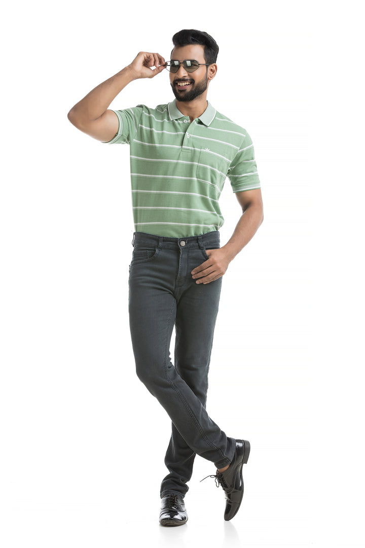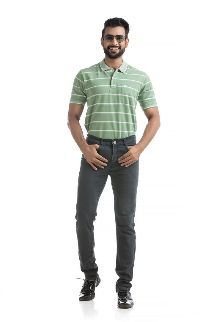 Mono Pattern Striped Polo T-shirt