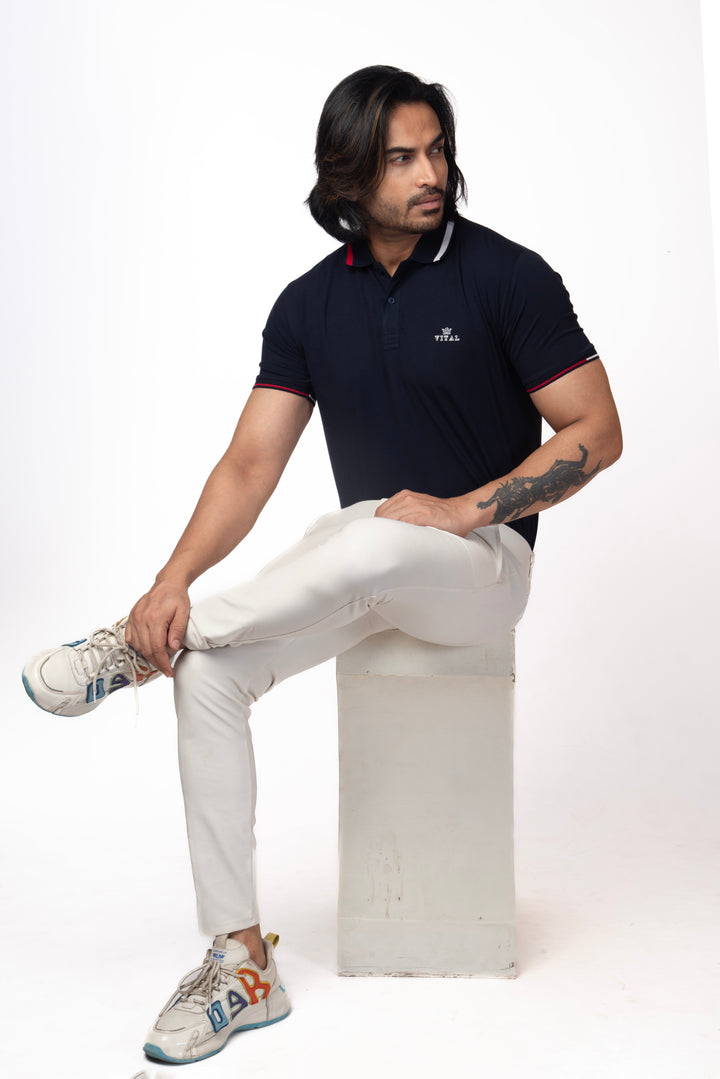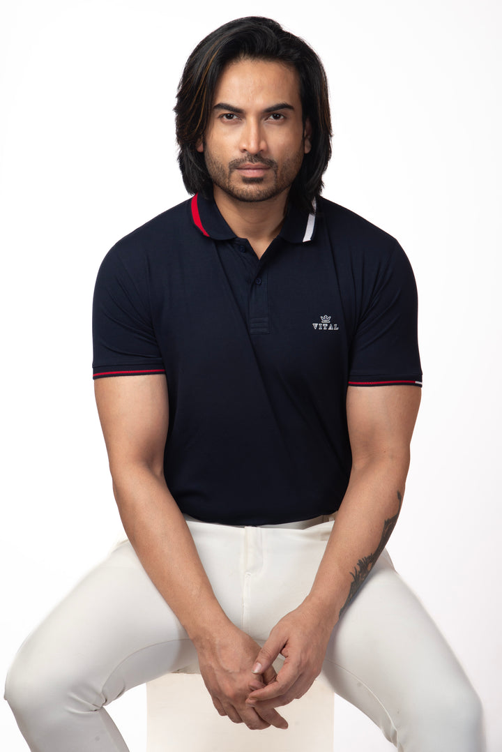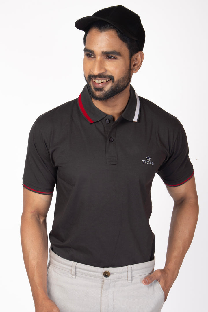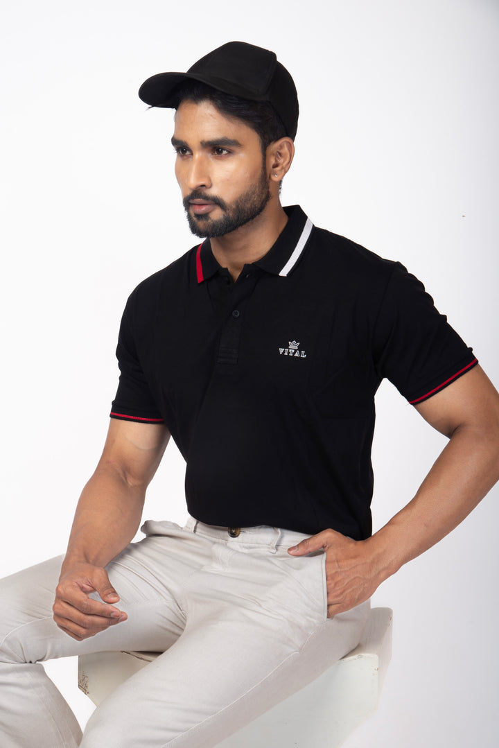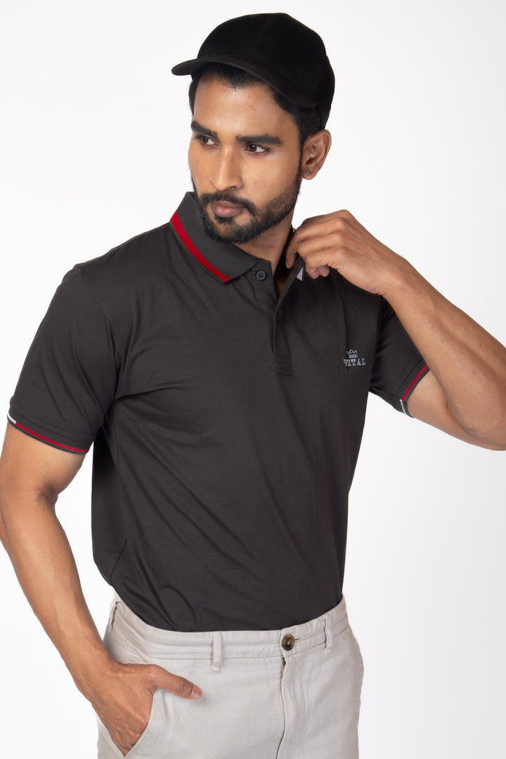 Ribbed Collar Polo T-shirt