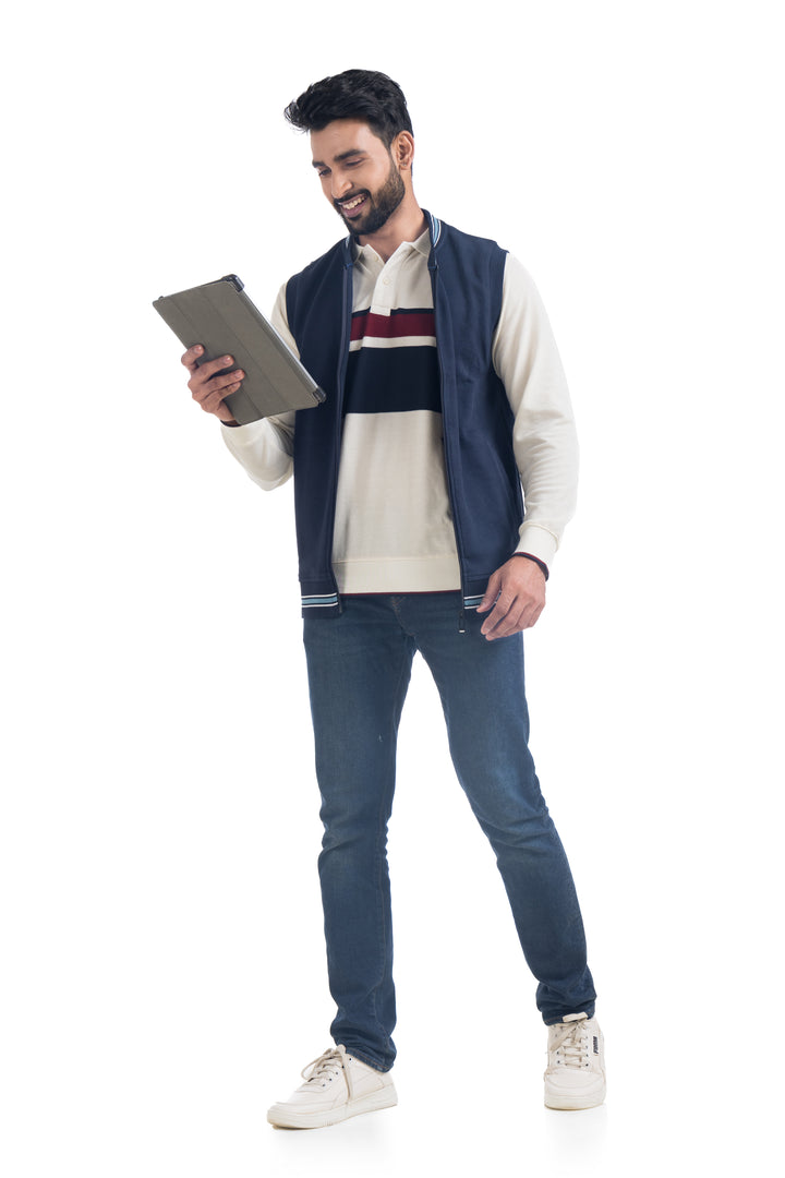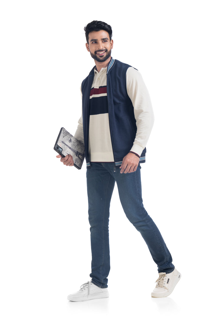 Featuring a solid striped collar neck, this jacket exudes a modern and trendy vibe. The unique striped collar adds a distinctive touch, making it a standout piece for both casual and semi-formal settings. This jacket is perfect for a variety of occasions. Whether you’re heading to college, the office, or a casual outing, its sleek design fits any environment. Its versatility allows you to pair it with different outfits, from jeans to chinos or even joggers. With a regular fit design, this jacket ensures freedom of movement and comfort all day long. The soft cotton fabric enhances the fit, making it easy to wear for extended hours without feeling restricted.