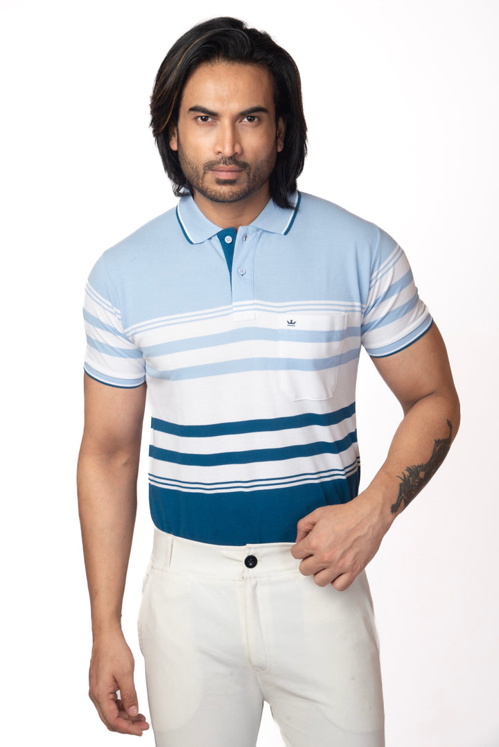 Upgrade your wardrobe with our Classic Striped Polo T-shirt. Made from high-quality fabric, this timeless piece combines style and comfort. Perfect for any occasion, its classic striped design is a versatile addition to any outfit. Experience the perfect blend of fashion and functionality.